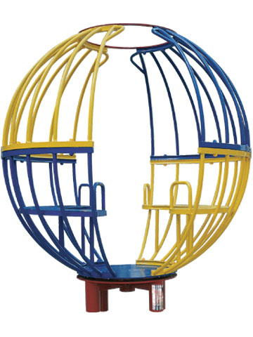 鍛煉方法:手握把手,坐或站立于離心球內(nèi),轉(zhuǎn)動(dòng)離心球。