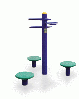 鍛煉方法:手握立柱把手,站在轉(zhuǎn)體盤上,向左右反復(fù)做轉(zhuǎn)體運動。